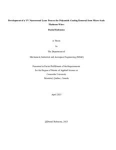 Rahnama, Danial (2025) Development of a UV Nanosecond Laser Process for Polyamide Coating Removal from Micro-Scale Platinum Wires. Masters thesis, Concordia University.