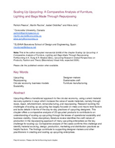 713kBScaling Up Upcycling - A Comparative Analysis of Furniture, Lighting and Bags Made Through Repurposing_AAM.pdf - Accepted Version Available under License Spectrum Terms of Access. |